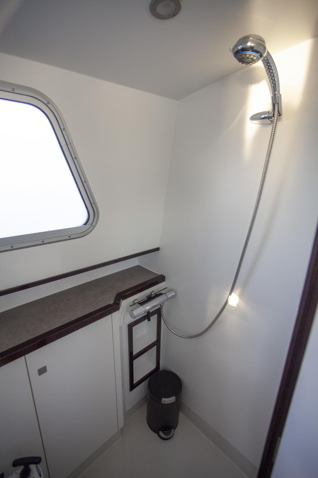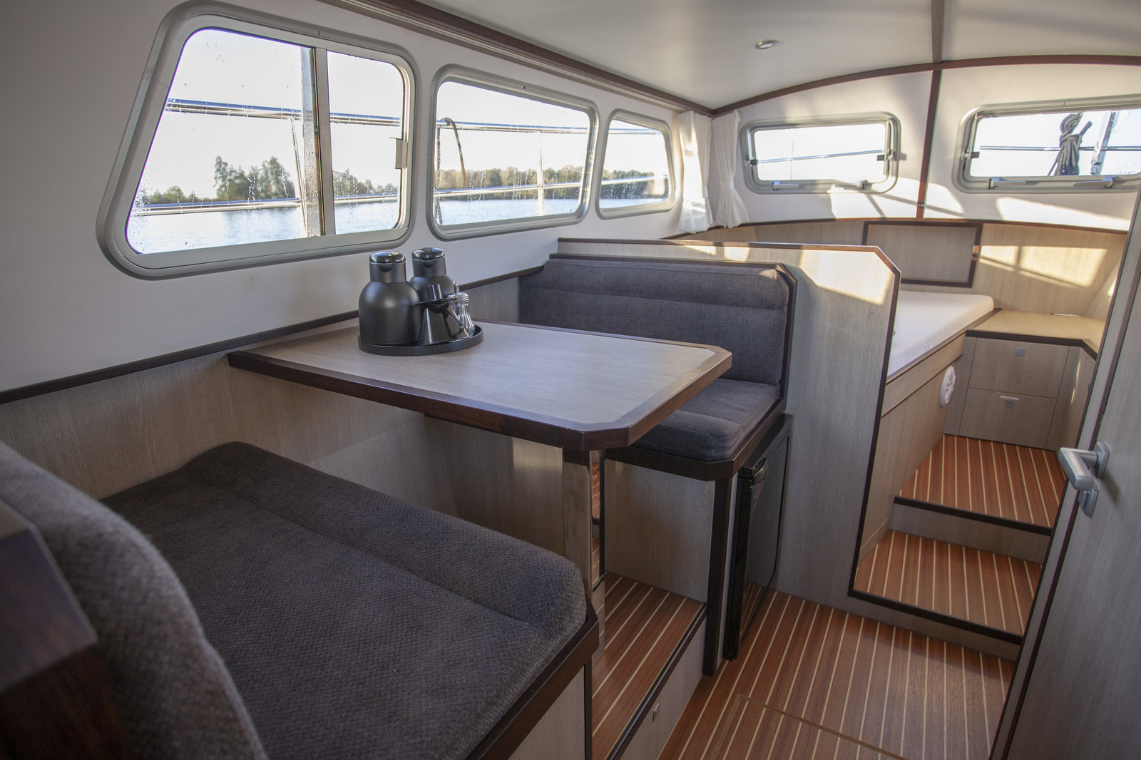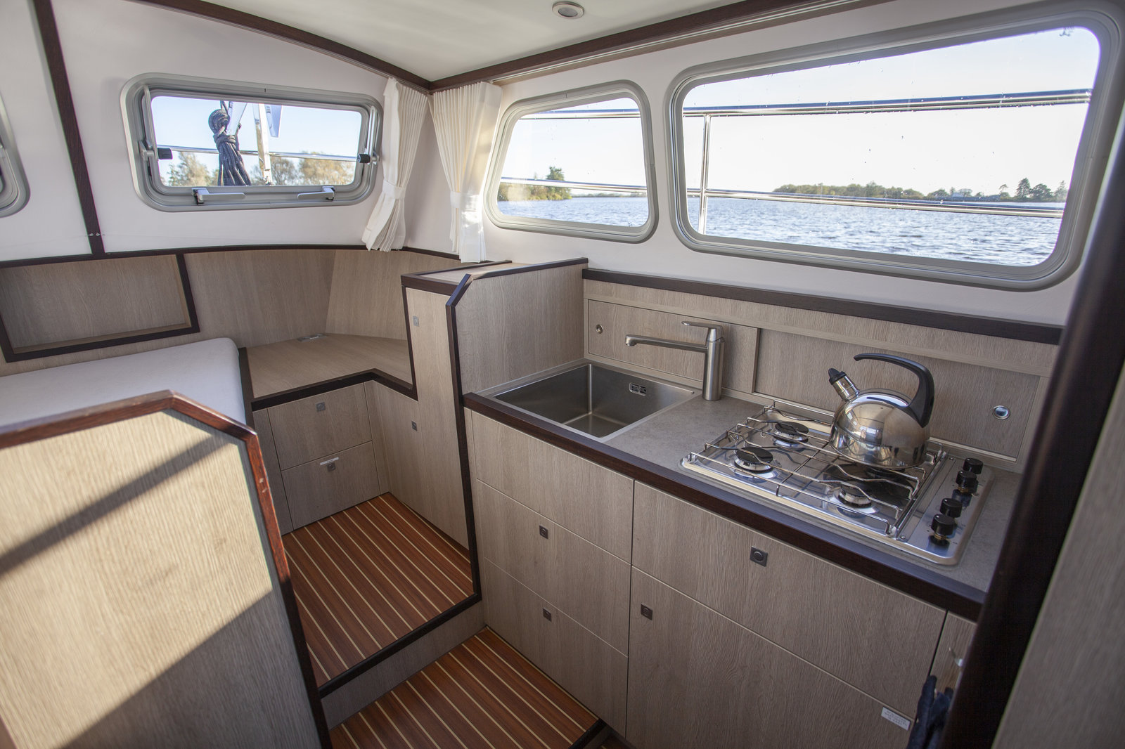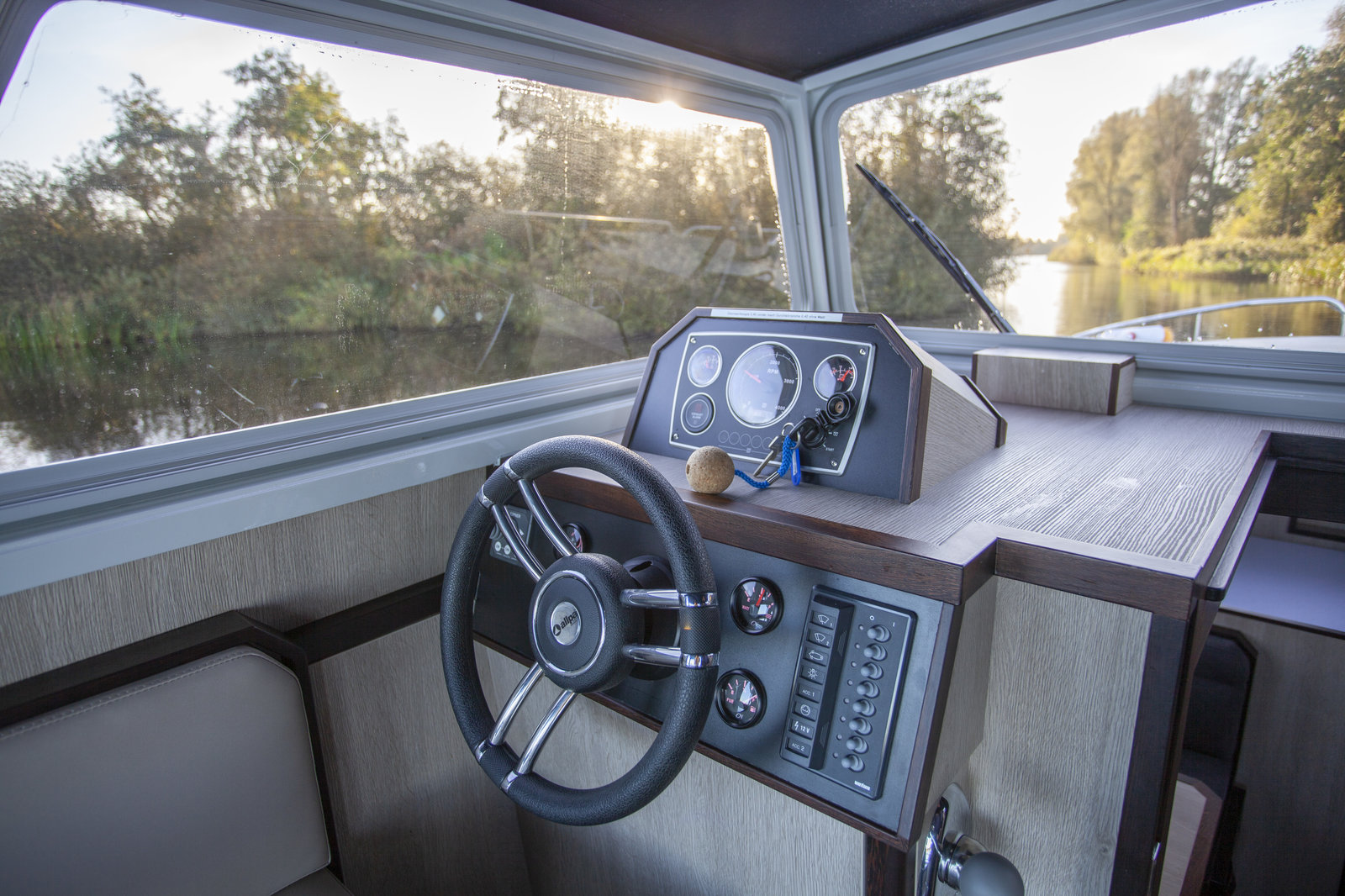 Varen en aanleggen gaat moeiteloos door het compacte ontwerp en de aanwezige boegschroef. De lage doorvaarthoogte maakt veel vaarroutes toegankelijk zonder dat je op brugopeningen hoeft te wachten, waardoor je ook gebieden kunt ontdekken die voor grotere motorboten vaak buiten bereik liggen.