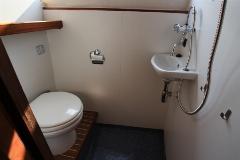 Achterkajuit: tweepersoons slaaphut met tweede wastafel voor optimale privacy en bergruimte. Douche, elektrisch toilet en wastafel.