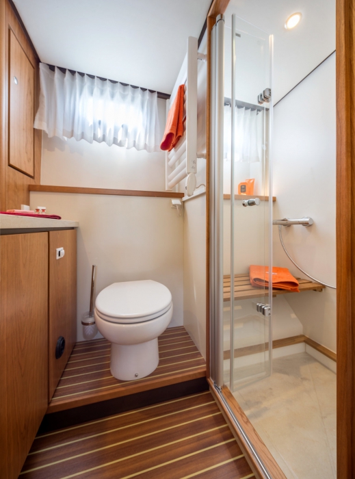 Dit is de perfecte keuze! Een jacht van 2021 met de nieuwste snufjes. Deze luxe boot staat garant voor een heerlijke vaarvakantie. Dit jacht is royaal ingedeeld met twee gelijkwaardige hutten met elk en tweepersoonsbed en twee badkamers en twee elektrische toiletten. Daarnaast beschikt dit type jacht over een royale derde hut met twee eenpersoonsbedden en veel kastruimte. Het elegante exterieur is zeer herkenbaar door de rondom lopende kabelaring, wat dit jacht een echt maritiem karakter geeft.